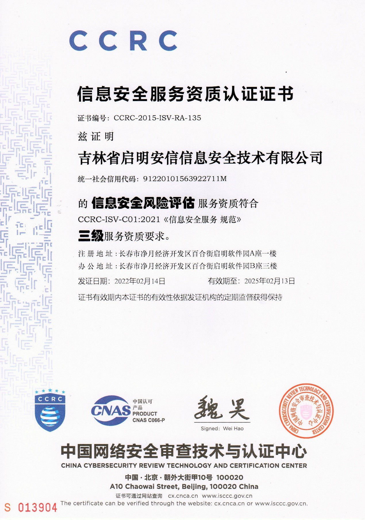 2.信息安全服務資質認證證書(shu)