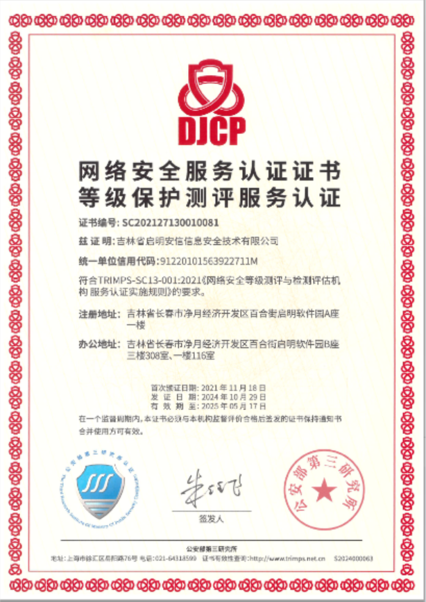 1.網絡安全服務認證證書(shu) 等級保護測評服務認證