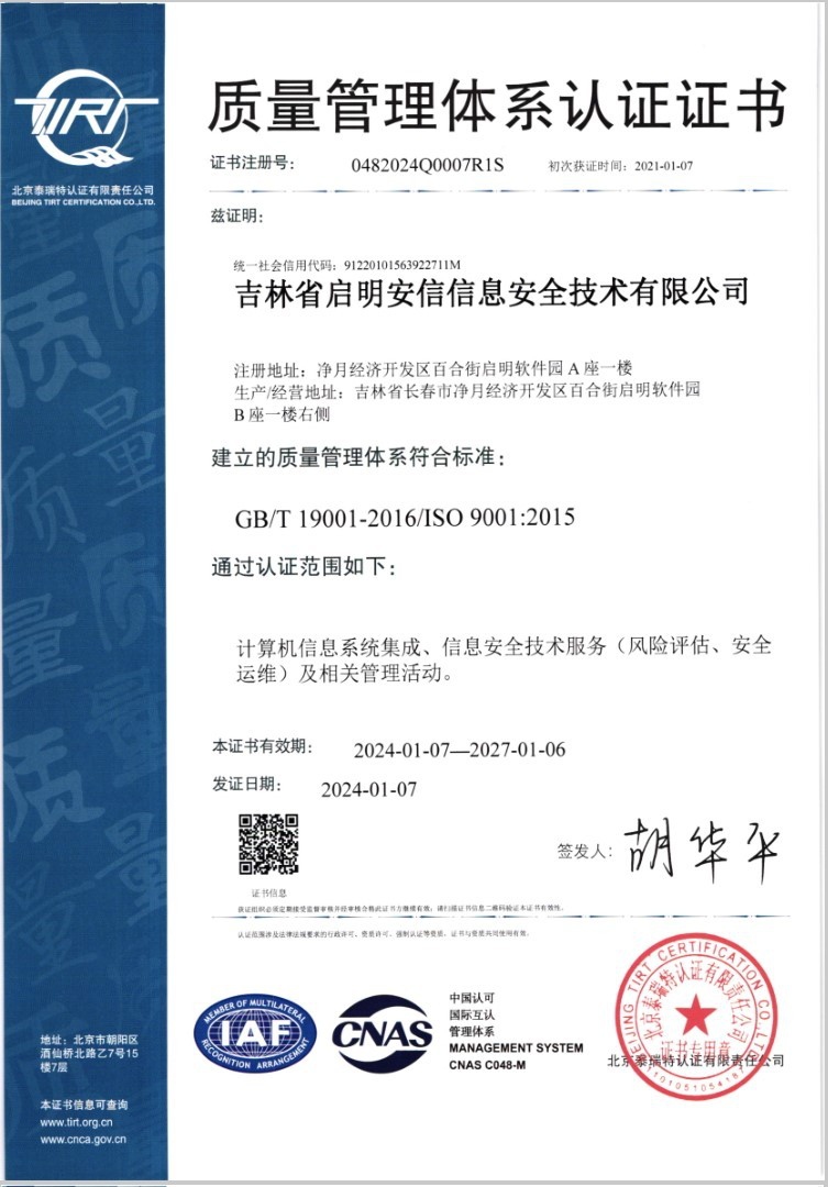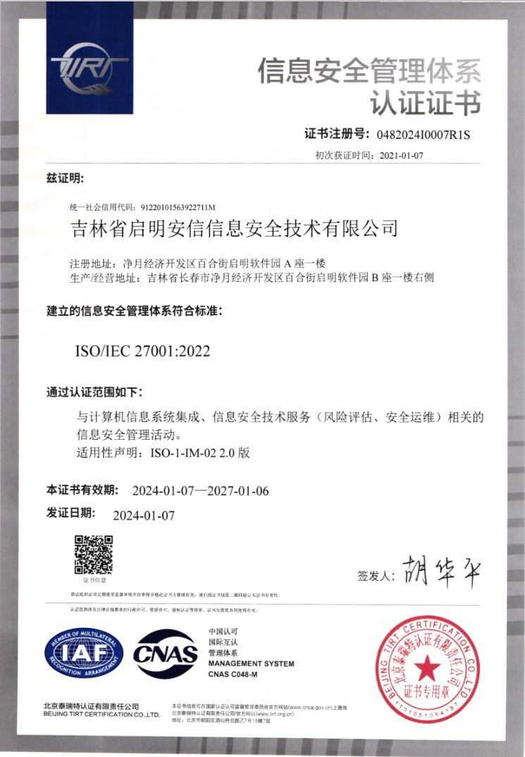 3.信息安全管理體(ti) 係認證證書(shu) (ioses 27001)