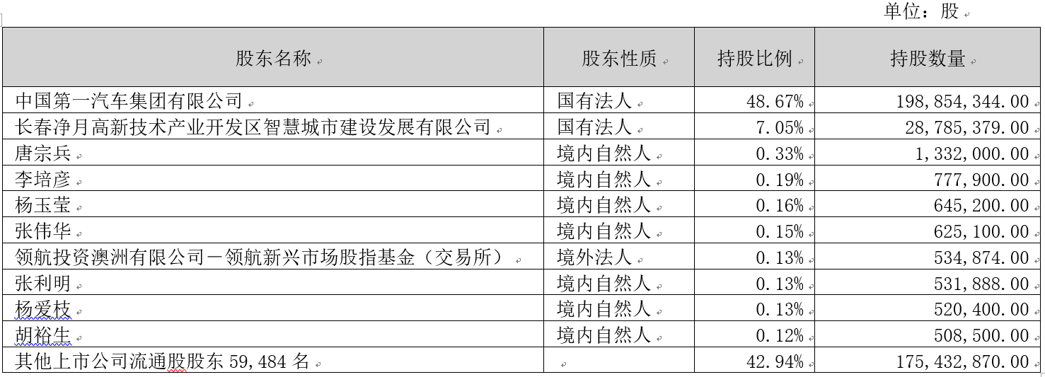 云顶国际集团信息技術股份有限公司(以下簡稱“公司”)2008年5月9日在深圳證券交易所掛牌上市,股票簡稱“云顶国际集团信息”,股票代碼為(wei) :002232,目前為(wei) 深交所主板上市公司。截至2022年9月30日,公司共有股東(dong) 59,494名,公司控股股東(dong) 及實際控製人為(wei) 中國第一汽車集團有限公司,具體(ti) 股權結構如下表: